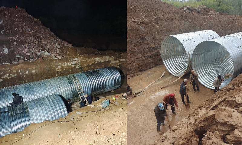 2021年10月10日晚,我公司接到山西晉中公路局緊急電話,208國道山西省祁縣某段公路路基被沖垮,交通被阻斷,山上有十幾個村莊的群眾被困日常生活受到嚴重影響,某乳企因鮮乳無法外運只能倒掉,情況緊急,現(xiàn)急需波紋鋼管涵搶修道路。